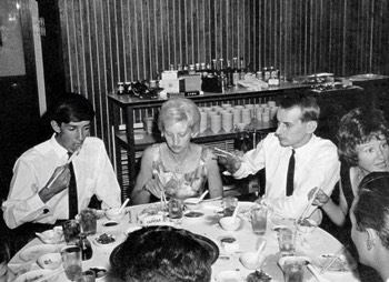 ( Phil Llewelyn's 21st Birthday, Singapore 1965 ) L-R : Phil Llewellyn, Tony McClenaghan, Maureen Mackney, Dave Mackney, Alan 'Jake' Jacobs, Pete Pugh.